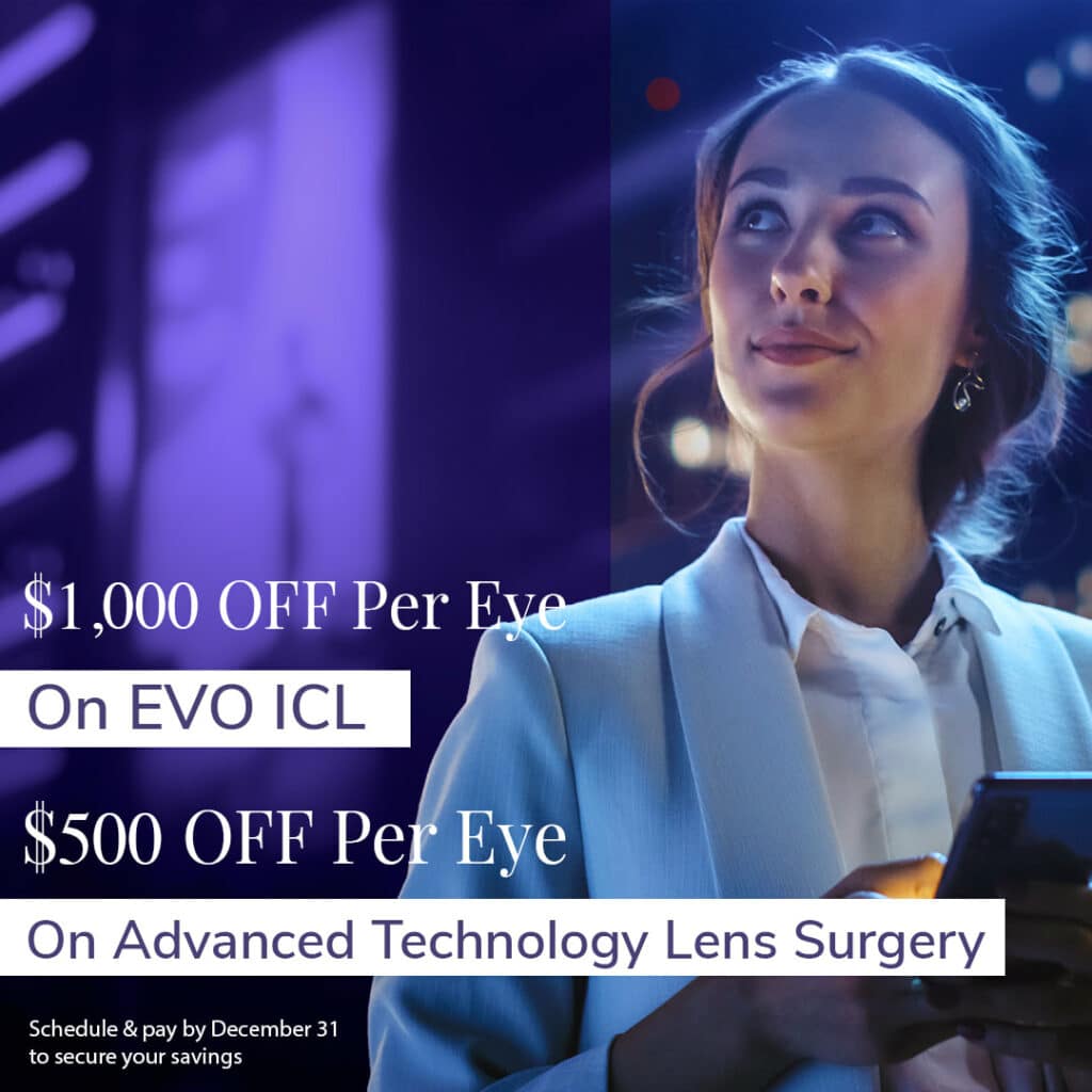 EVO ICL is suitable for patients with myopia (nearsightedness), hyperopia (farsightedness), and astigmatism. It's an excellent option for people who have been told they aren't a candidate for LASIK or PRK, or those who prefer not to have laser vision correction.